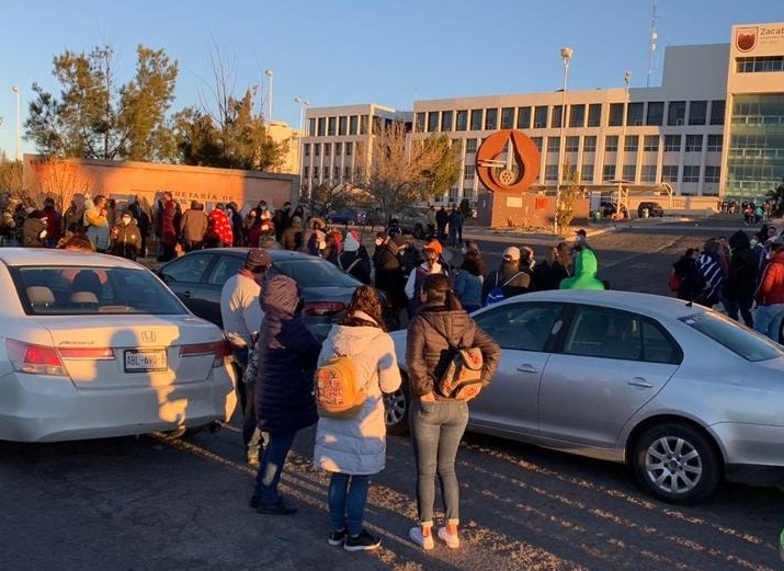 Zacatecas, Zac.- El magisterio de la sección 58 de la SNTE tomó la Secretaría de Finanzas esta mañana y reunió a un grupo numeroso de afectados ante la falta de pago de salario.