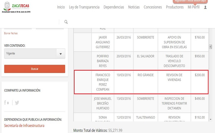 En la currícula que envió la Delegación de Programas de Desarrollo tras el nombramiento en la Procuraduría Agraria, se omitió esta referencia , pero expresada en la página de trasparencia del gobierno estatal en ese año, y que mostró el nuevo titular de la dependencia trabajaba en la Secretaría de Infraestructura.