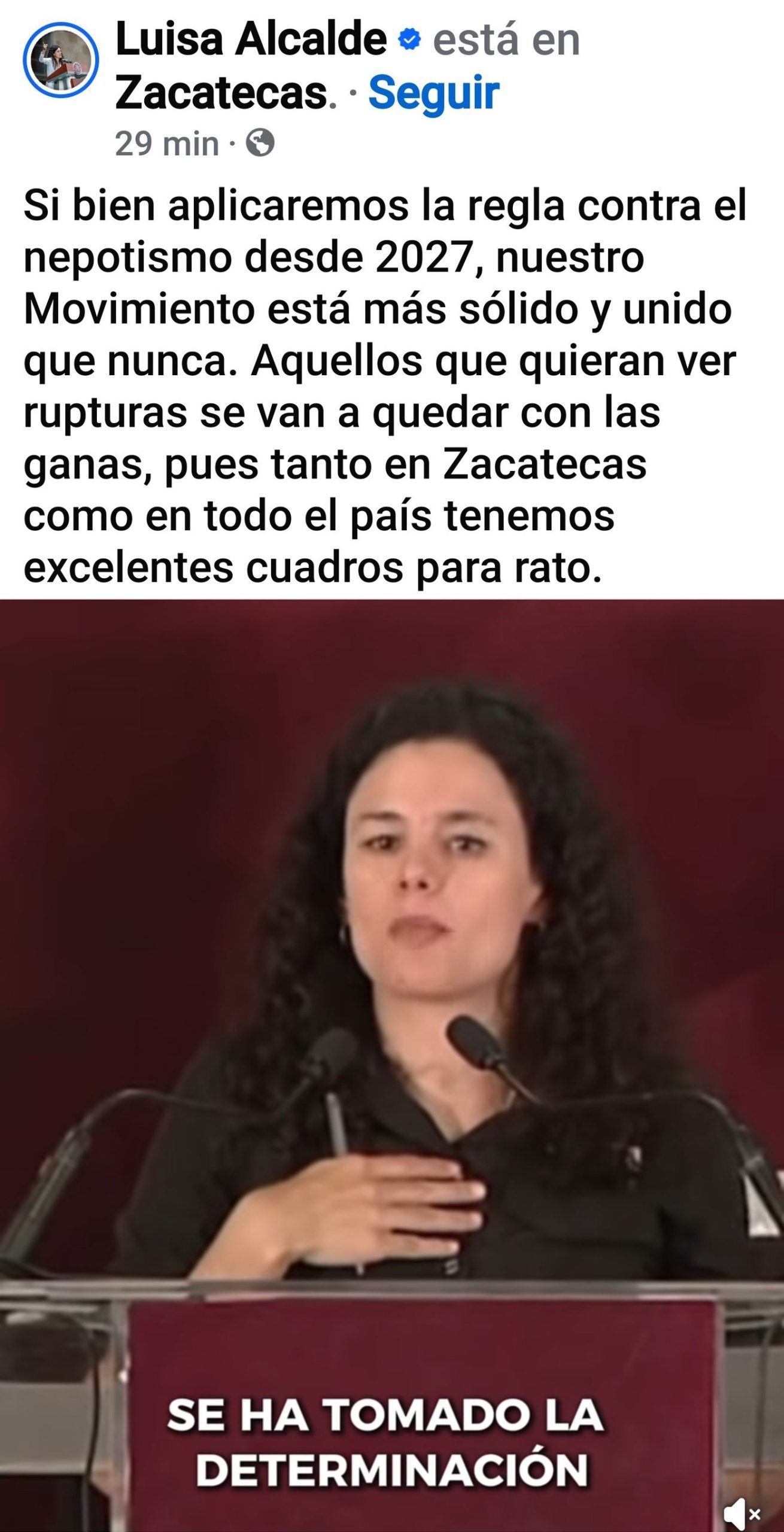 Pero al mismo tiempo, se le cuestionó a la dirigente acerca de las respectivas de Saúl Monreal. Fue tajante, el senador no podrá competir por Morena dado los estatutos reformados que impiden aplicar nepotismo en la sucesión de cargos de elección popular. Pese a la discusión que en el marco de la reforma constitucional en la materia que debió entrar en vigor para 2027, pero gracias a la operación del Verde, Ricardo Monreal y Adán Augusto, se relegara hasta 2030, no cierra las puertas unilateralmente a Saúl.
