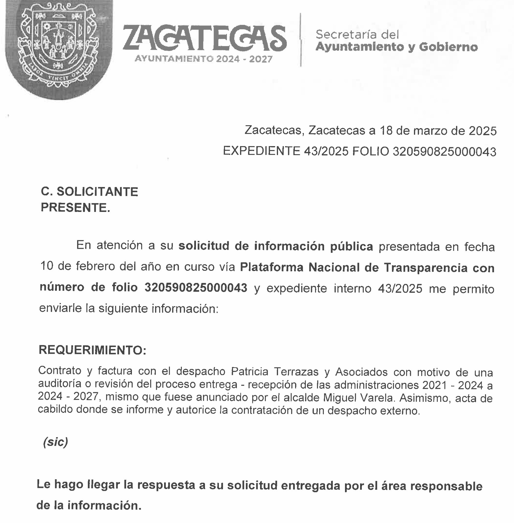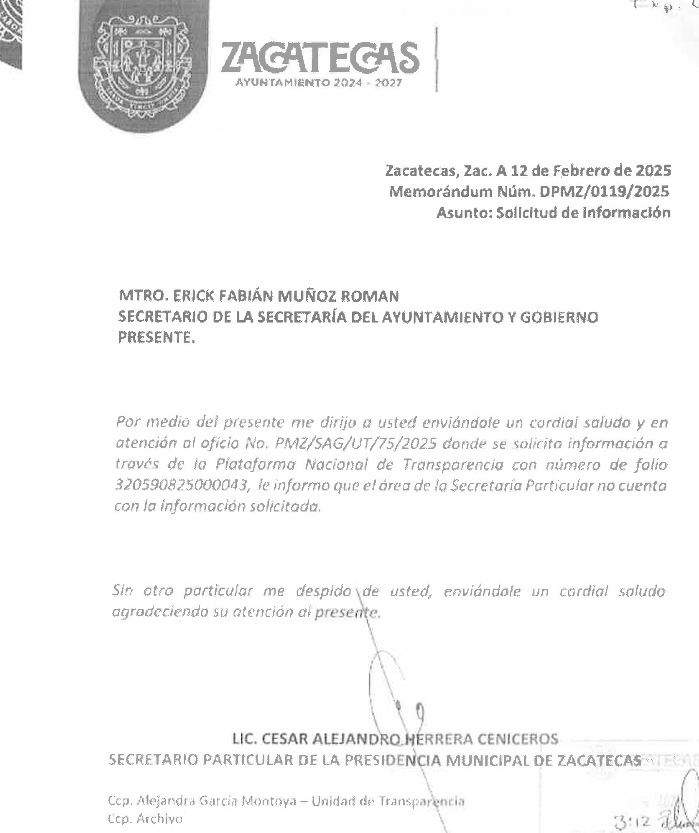 Sin embargo, nunca se aplicó. Documentación por transparencia demostró que nunca se realizó la misma, porque no existían archivos al respecto. Fue la misma Secretaría del Ayuntamiento y Gobierno, que encabeza Erick Fabíán Muñoz, quien emitió la respuesta a la solicitud 320590825000043 realizada por quien redacta el presente texto. Además, se cruzó la solicitud con Finanzas del Ayuntamiento y la Unidad de Transparencia, mismas que corroboraron la inexistencia de tal auditoría.
