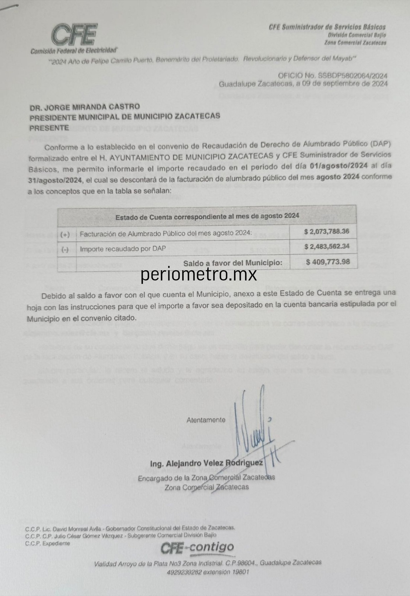 Aún así, con el estado de cuenta de la CFE mostrado en ese entonces, casi un año después, refritean un tema dirimido documentalmente. Son unos verdaderos genios los asesores de Varela. Ahora, el boletín oficial de la supuesta liquidación del adeudo, se intentó meter con calzador en la narrativa del fallido programa “Zacatecas, más limpio que nunca”, como un “logro” de “el área de Calidad de Vida y Servicios Públicos de la capital, encabezada por la licenciada Guadalupe Flores, ha mantenido la prestación de Servicios Públicos como una prioridad constante para garantizar mejores espacios públicos a las y los zacatecanos”; y anexa: “La regularización de las cuentas de alumbrado es un paso clave para asegurar la operación eficiente y la mejora continua de la infraestructura lumínica en la capital”. Es decir, bajo esa “argumentación”, ¿ahora sí se harán cargo de la vialidad Nezahualcóyotl?, porque para unas cosas si invocan el 115 constitucional, para otros temas evaden su responsabilidad implícita.